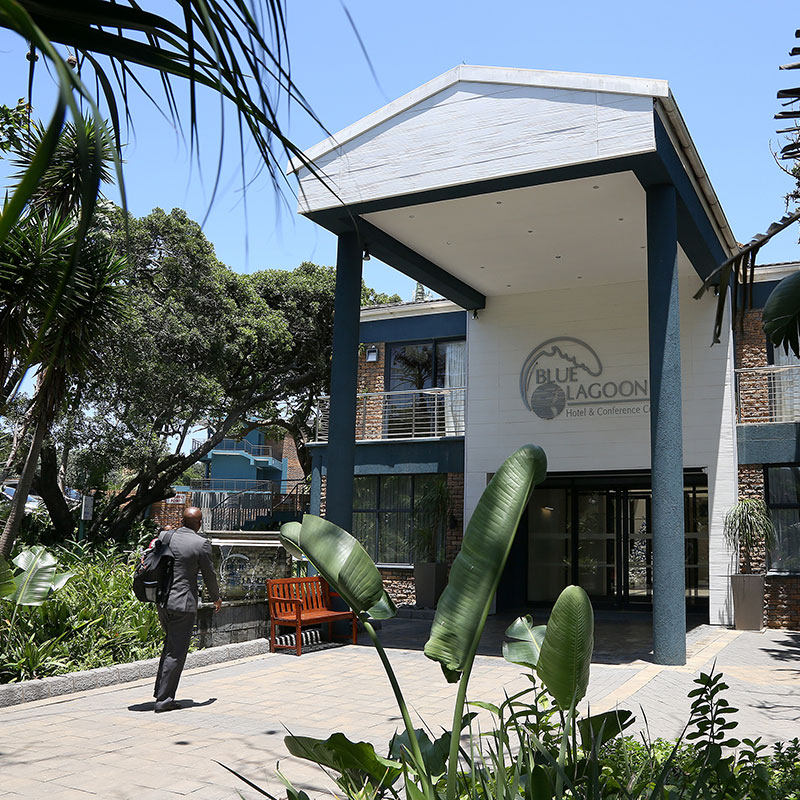 Nestled on the contours of the Indian Ocean and the Nahoon River, the Blue Lagoon Hotel presents incredible river and ocean views that provide an atmosphere and scenery like no other. The Blue Lagoon Hotel lies nestled in indigenous, sub-tropical foliage and is easily accessible for you to reach all major routes within East London. Our Hotel also features intimate meeting and function venues for you to enjoy. We offer complimentary Wi-Fi and friendly hospitality. We offer a delightful blend of the stylish garden-facing hotel rooms, or modern luxury two-bedroom lagoon-facing apartments with easy access to the river and beaches. There is also a ladiesโ floor available for the discerning businesswoman travelling alone who would like the comfort of added security and privacy.